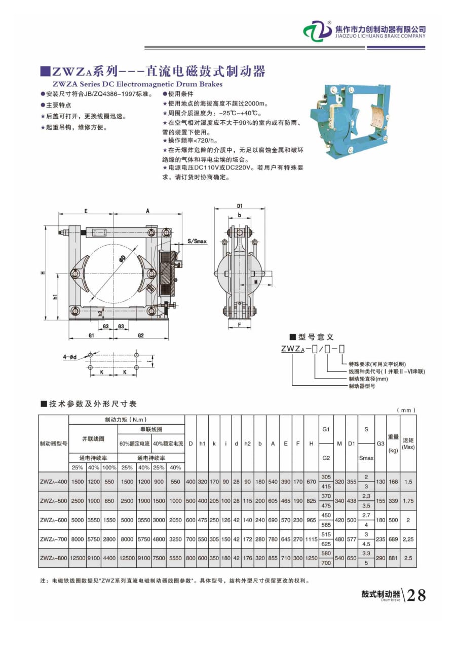 ZWZA系列-一一直流電磁鼓式制動器